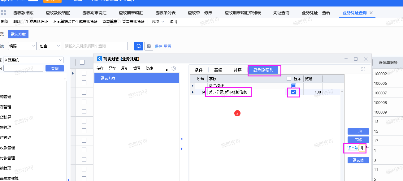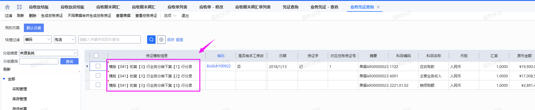 金蝶 总账凭证如何联查来源于哪个凭证模板生成 RedLab • 2025年10月22日 • 发表评论 目录 Toggle 概述步骤1.总账凭证联查业务凭证2.复制业务凭证的编码3.打开业务凭证查询界面,查询对应的业务凭证4.主要业务凭证查询界面勾选凭证分录并在显示影藏列勾选显示【凭证模板信息】5.可以通过凭证模板信息查看每一行分录来源的模板信息 概述 总账凭证如何联查来源于哪个凭证模板生成,对于定位凭证生成报错的凭证模板分录行,找到错误报错原因很大的帮助。本文说明步骤。 步骤 1.总账凭证联查业务凭证 2.复制业务凭证的编码 3.打开业务凭证查询界面,查询对应的业务凭证 4.主要业务凭证查询界面勾选凭证分录并在显示影藏列勾选显示【凭证模板信息】 5.可以通过凭证模板信息查看每一行分录来源的模板信息