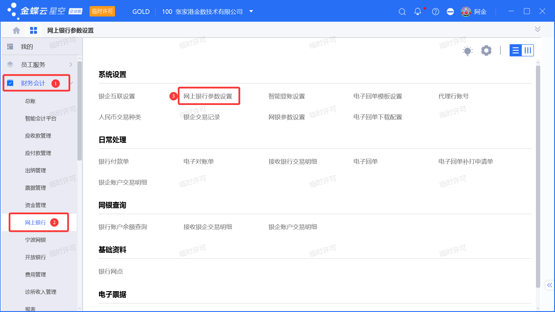 设置路径:【财务会计】-【网上银行】-【网上银行参数设置】