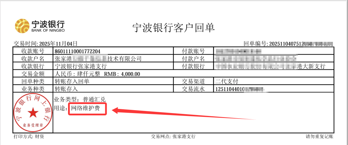 - 银企付款时,回单用途的备注为必填项,必须填写付款用途,未填则交易失败。