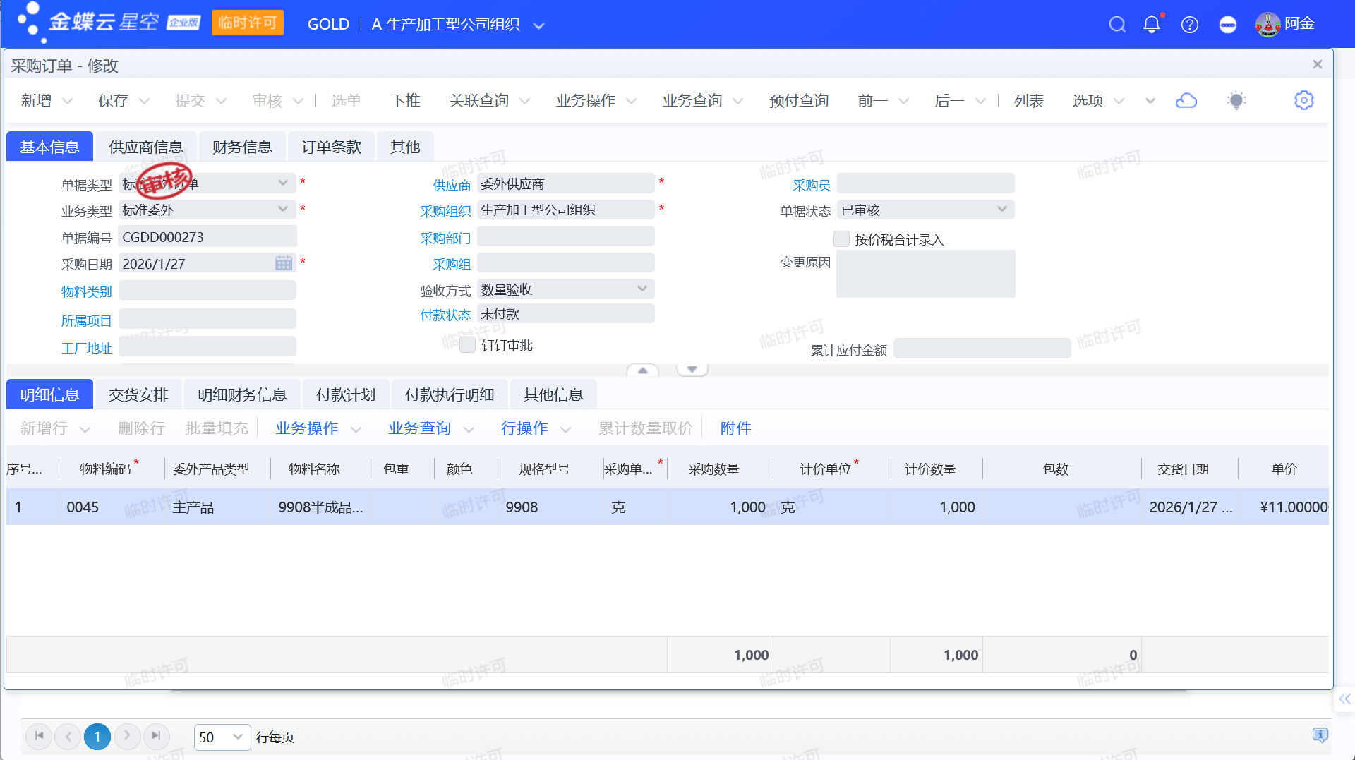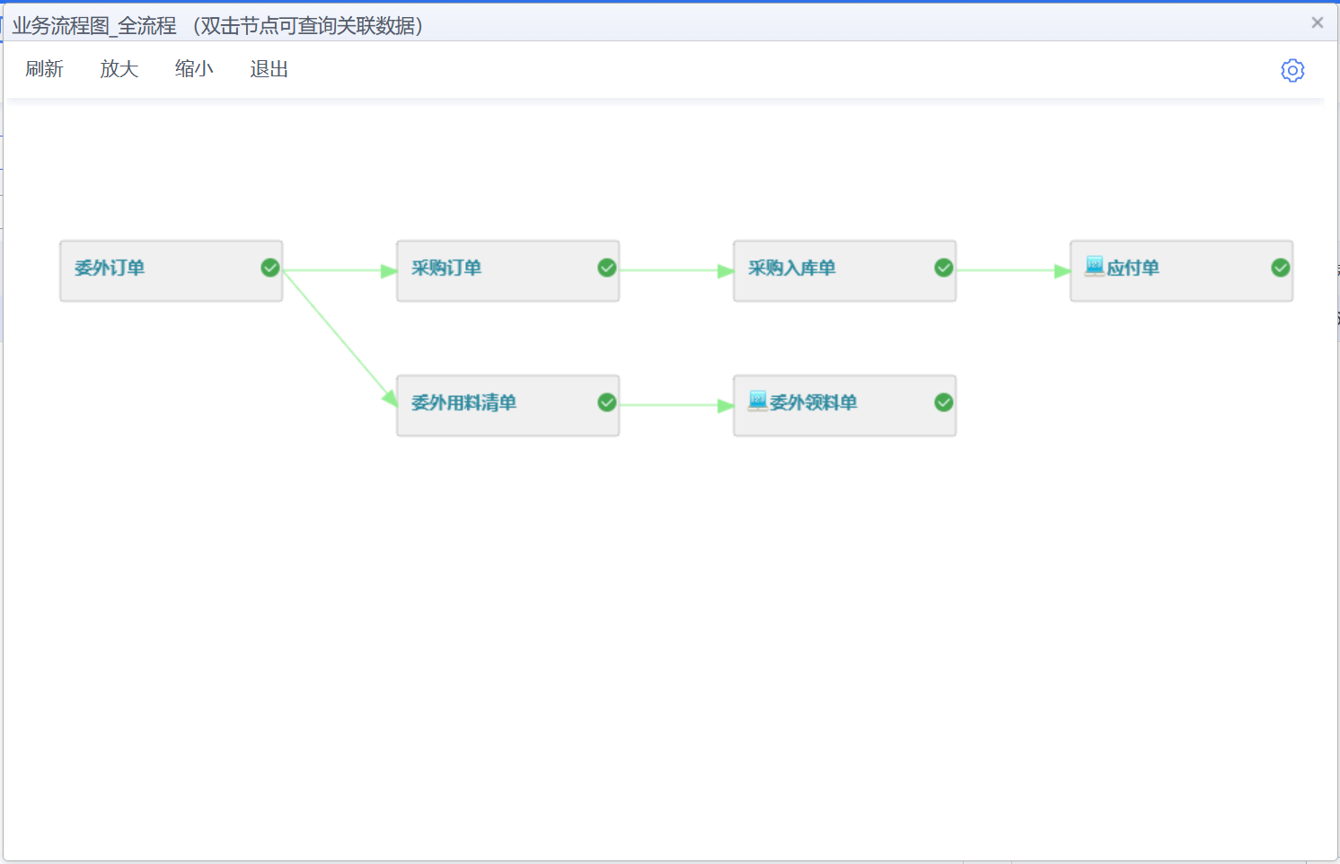 最后进行付款后,委外的业务流程就全部完成。